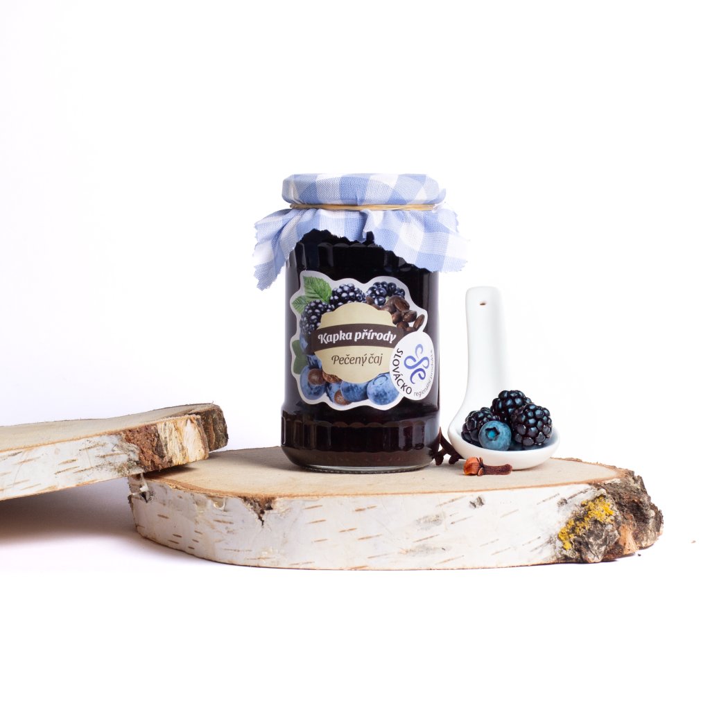 Složení: Ostružiny 40%, borůvky 40%, cukr 15%, káva 4%, kyselina citrónová 0,5%, skořice 0,25%, hřebíček 0,25%